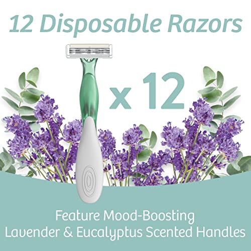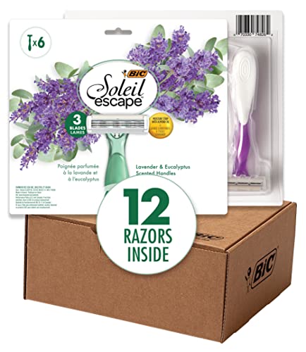Two 6-count packs of BIC Soleil Escape 3-Blade Women’s Disposable Razors with mood-boosting, refreshing Lavender & Eucalyptus Scented Handles