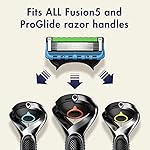The Gillette ProGlide men’s razor with FlexBall technology responds to your contours giving you uncompromising closeness and comfort. The handle’s FlexBall technology responds to contours and the blade refill features 5 antifriction blades for a shave you can barely feel. The blades are spaced closely together for incredible comfort with a precision trimmer on the back for hard to reach places and for styling your facial hair just the way you want it. The enhanced lubrastrip (vs. Fusion5) has more lubricants for comfort and glide. This enhanced lubrastrip also fades when you are no longer getting an optimal shave. Soft microfins gently stretch and smooth your skin to prepare hairs for a close shave while a microcomb helps guide your hair for a close shave from our thinnest blades. The ProGlide razor for men features our sharpest blades (first 4 blades) which help get virtually every hair effortlessly. One razor blade refill lasts up to one month of shaves. All ProGlide blade refills can fit all Gillette 5 blade razor handles (excluding GilletteLabs).