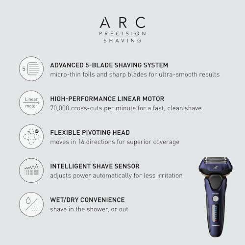 High-Performance Motor for a Fast, Powerful Shave: Panasonic ARC 5 mens electric razor uses an ultra-fast motor and 5-blade system to deliver up to 70,000 cross cuts per minute, making shaving quicker, smoother, and more efficient