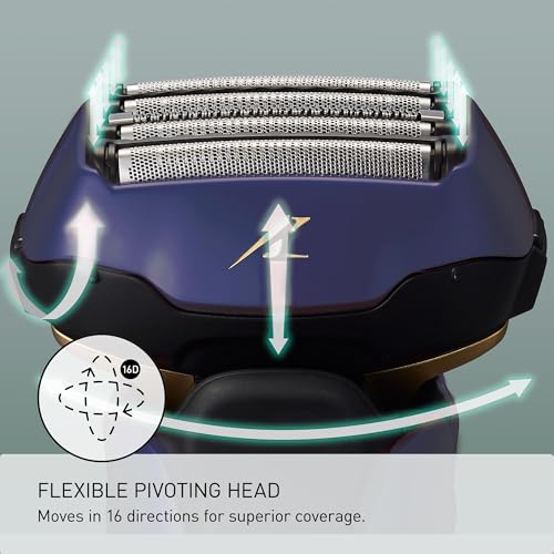 Flexible 16-D Shaving Head: Pivots effortlessly in 16 directions independently to follow and conform to the skin’s natural contours and keep in close contact with the face, neck, chin and jaw
